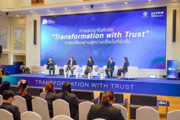 ภายในงานยังมีการเสวนาในหัวข้อ “Transformation with Trust – การเปลี่ยนผ่านสู่ความเชื่อมั่นที่ยั่งยืน” โดยผู้ทรงคุณวุฒิจากภาคการค้าและภาคเอกชน ได้แก่ คุณกรด โรจนเสถียร กรรมการสภาหอการค้าแห่งประเทศไทย คุณวรวรินทร์ แสนพูลทรัพย์ ประธานเจ้าหน้าที่บริหารสายการค้า บริษัท บูโอโน่ (ประเทศไทย) จำกัด (มหาชน) และคุณวีระชน ขาวผ่อง ผู้ช่วยกรรมการผู้อำนวยการ บริษัท เอ็น เอส แอล ฟู๊ดส์ จำกัด (มหาชน)